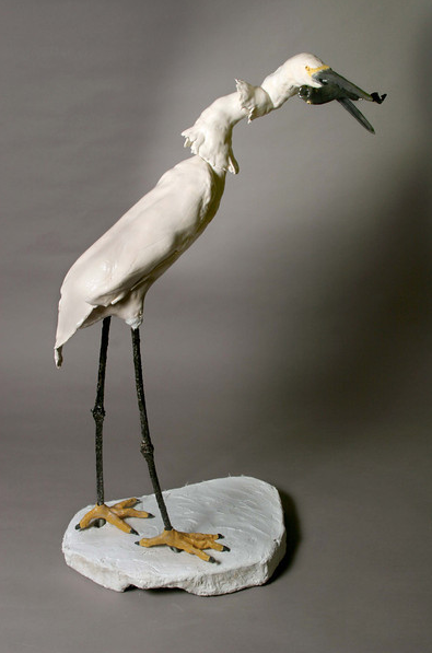 Snowy Egret. 40"h x 29"w x17"d; porcelain paperclay.